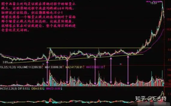 3、选择黑马股的绝招之一是根据成交量变化,能够大涨的股票必须有大的底部动力,否则不会大涨。底部动力越大的股票,则上涨力度越强。